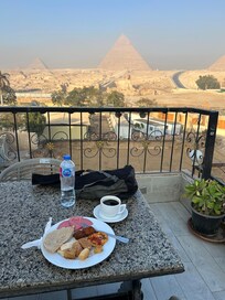 I recently stayed at Pyramids View Inn Bed & Breakfast in Cairo, and it was truly an unforgettable experience. The location is absolutely unbeatable, the pyramids are literally right next to the property. The view from both my room and the rooftop was absolutely astonishing, especially during sunrise and sunset. It felt like the ultimate pyramid-view stay.